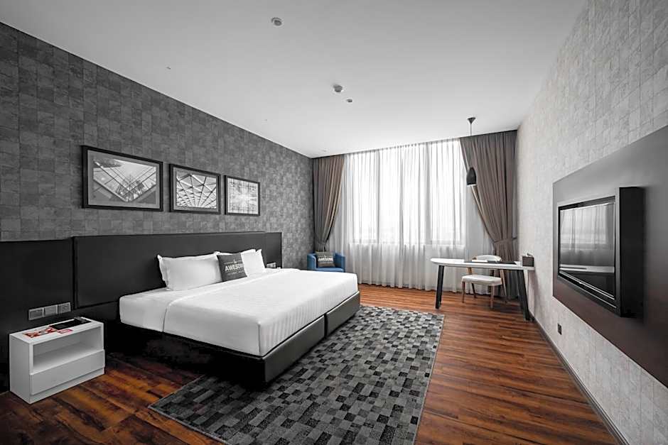 This air-conditioned deluxe room opens up to views of the city. It is fitted with a flat-screen cable TV, mini-bar and a desk. The private bathroom includes shower facilities, a hairdryer and free toiletries.